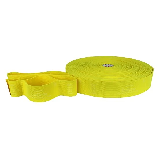 Das CanDo Multi-Grip Fitnessband „Exerciser Rolle” ist ein Textil-Widerstandsband, welches mit besonderen Dehneigenschaften überzeugt. Das 27 m lange Textilband ist aufgerollt und lässt sich von Ihnen für die Patienten individuell zuschneiden. Dafür sind speziell vorgefertigte Bereiche vorhanden. Besonders praktisch: Die Schlaufen für Hände, Finger, Oberschenkel und Füße ermöglichen ein variantenreiches Dehn- und Muskelaufbautraining. Zudem lässt sich der Abstand durch die Schlaufen perfekt variieren. Je enger Ihr Patient greift, desto höher ist der Widerstand. Auch für Allergiker eignet sich das Textilband hervorragend, denn es frei von LatexGebräuchliche Bezeichnung für Gummi. Latex ist der Milchsaft des Kautschukbaums und ein Bestandteil von Gummi. Er wird nach dem Trocknen als Kautschuk bezeichnet. und einer Pulverbeschichtung