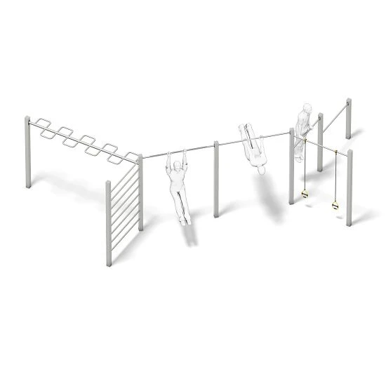 Die Playparc 4FCIRCLE Calisthenics-Anlage „Enterprise“ bringt sowohl Anfänger als auch Fortgeschrittene in Bewegung. Die Outdoor-Fitness-Anlage bietet verschiedene Stationen, um alle Muskelgruppen im Körper anzusprechen. So besteht die Anlage aus 1 Sprossenwand, 1 Bogenhangelleiter, 4 verschiedenen Reckstangen sowie 2 Suspensionsringen. Hochwertige Materialien sorgen für eine besonders lange Lebensdauer der 4FCIRCLE Calisthenics-Anlage „Enterprise“ von Playparc.