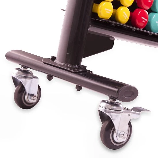 Für eine einfache und platzsparende Lagerung Ihrer Hanteln – Kaufen Sie sich jetzt den fahrbaren Ablageständer.