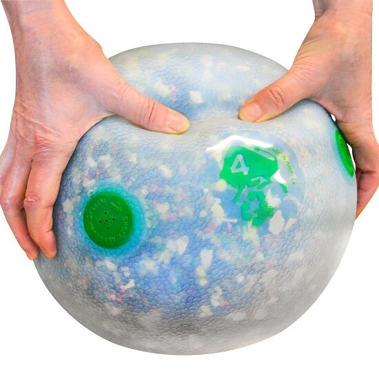 Der Trial Slam Ball „Recycle“ überzeugt vor allem durch seine umweltfreundlichen Eigenschaften – denn er ist zu 98 % aus recyceltem Material gefertigt, welches als Abfallprodukt keine Verwendung mehr hätte. Lediglich die transparente Schale wird hergestellt, damit das Kunststoff-GranulatEin Gemisch aus festen Partikeln des jeweiligen Materials, wie z.B. Körnern oder Kugeln. Verwendung vor allem als Füllmaterial. perfekt umhüllt ist. Die lieferbare Menge wird durch den Ausschuss an Material bestimmt. Darüber hinaus ist der Ball mit 2 Ventilen versehen, welche beim Aufprall dafür sorgen, dass die Luft im Inneren entweicht. Der Slam- Effekt erhöht sich, das Springen und Wegrollen des Balles wird verhindert.