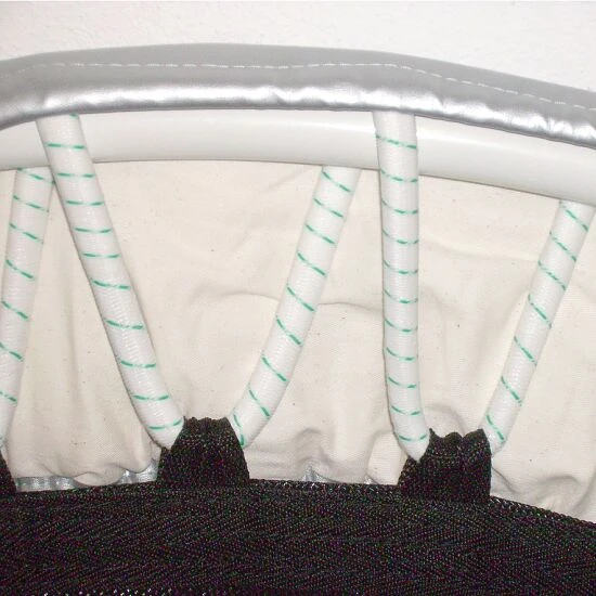 Die Sprungmatte des Heymans Trimilin Trampolins „Superswing“ ist besonders hochwertig verarbeitet und behält auch nach jahrelangem Gebrauch ihre hervorragenden Sprungeigenschaften. Die federnde Matte ist mit einem Spezialgarn vernäht. Das sorgt für eine lange Lebensdauer. Ein speziell ummanteltes Gummikabel hält die Sprungmatte und garantiert eine hohe Dehnbarkeit und Elastizität. Wenn Sie Ihr Mini-Trampolin nur selten bewegen müssen, empfehlen wir Ihnen eine Ausführung mit Schraubbeinen. Wenn Sie Ihr Rebounder-Trampolin nach jedem Training wegstellen müssen, ist eine Variante mit Klappbeinen ideal: Mit wenigen Handgriffen können Sie es zusammenklappen und einfach und platzsparend verstauen.